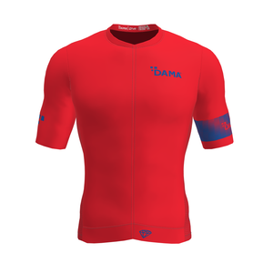 Maglietta ciclismo realizzata in tessuto estivo personalizzabile in microfibra ad alta traspirabilità. Maniche a giro con fondo a taglio vivo Zip YKK® coperta anteriore divisibile con chiusura CamLock® Fascia elastica in vita Elastico girovita siliconato interno posteriore N°3 tasche esterne posteriori